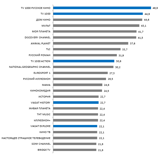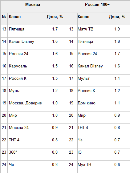 А теперь посмотрим на телесмотрение в Москве и в России.