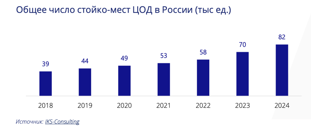 В последние три года крупные компании начали строить собственные ЦОДы из-за нехватки мощностей в коммерческих. В России установлено более 82 000 серверных шкафов, с годовым ростом в 17%.