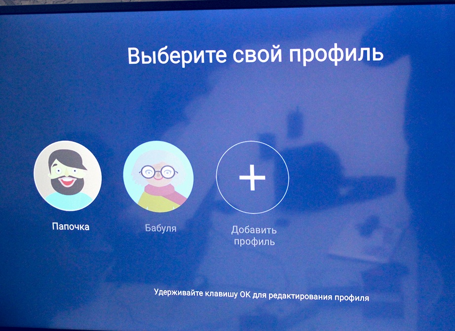 С профилями в данной версии приложения есть небольшая накладка: очень трудно понять, какой профиль сейчас находится в фокусе. Немного переборщили с дизайном и понадеялись на 4К разрешение телевизора. Но правда жизни заключается в том, что не все жители России имеют орлиное зрение.