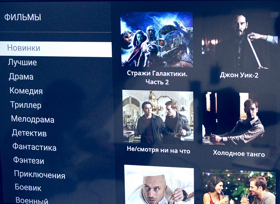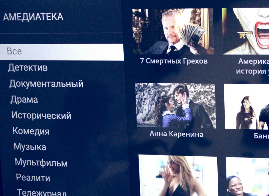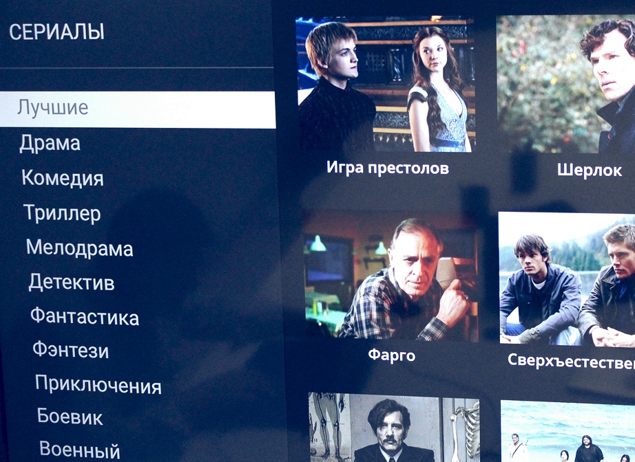 Сначала пробегаетесь по "ТВ эфиру", "фильмам", "сериалам", "передачам" (так и не понял, что это). А также "детям" и "спорту".