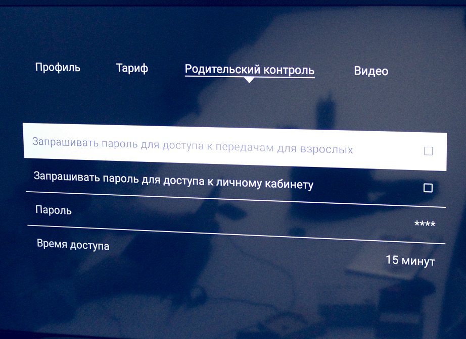 Очевидно, что нужно сказать пару слов о настройках приложения. Больше и не надо, ибо там есть "профиль", который привязывается к номеру мобильного телефона (приходит смс с подтверждением), выбор тарифного плана (мне дали полный фарш для тестирования) и "родительский контроль" для ограничения времени просмотра, чтобы уроки делали.