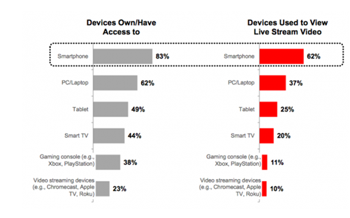 Если взглянуть на данные по устройствам, на которые люди принимают стриминговое видео, то лидируют несомненно смартфоны!