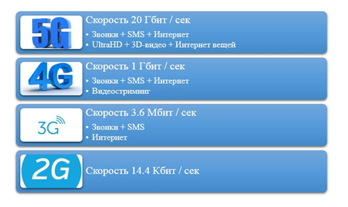 На отличном ресурсе www.setphone.ru вот здесь и вот здесь можно найти системную информацию об эволюции сотовой связи и технических характеристиках нового поколения связи 5G, которые наглядно показаны на нижеследующей диаграмме: