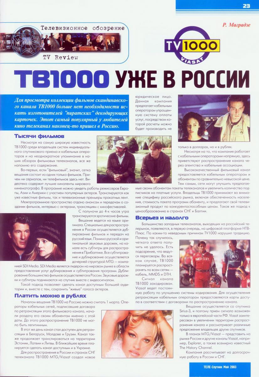 Мы поняли, что самым привлекательным на тот момент будет запуск фильмового телеканала TV1000, так как он уже был известен и зрителям, и кабельным операторам России, которые его с удовольствием пиратили до 2002 года.