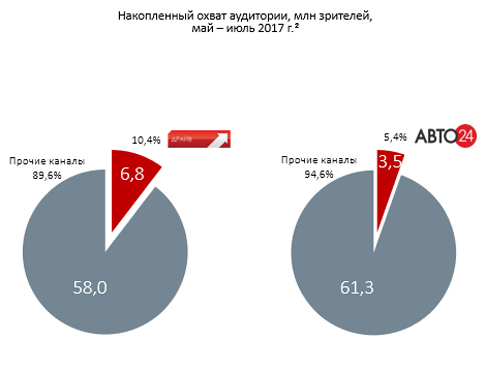 2 - Источник: Mediascope, проект TV Index Plus, электронные измерения, Россия (совокупность городов 100 000+), май – июль 2017 г., население 4+.