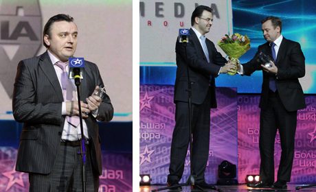 19:53 «Маркетинговое продвижение компании-оператора», финалисты: Билайн, МТС, Орион-Экспресс. МТС обходит Билайн в «кабеле»! Орион-Экспресс берет премию за спутник! Это объявление сопроводил громкий радостный визг (предварительная версия, что возопила сама Бельская была опровергнута, за Яну радовался - Иван Бехтев).