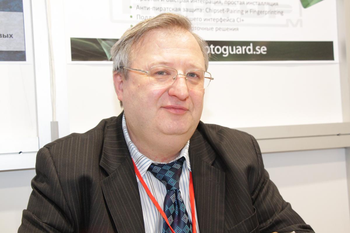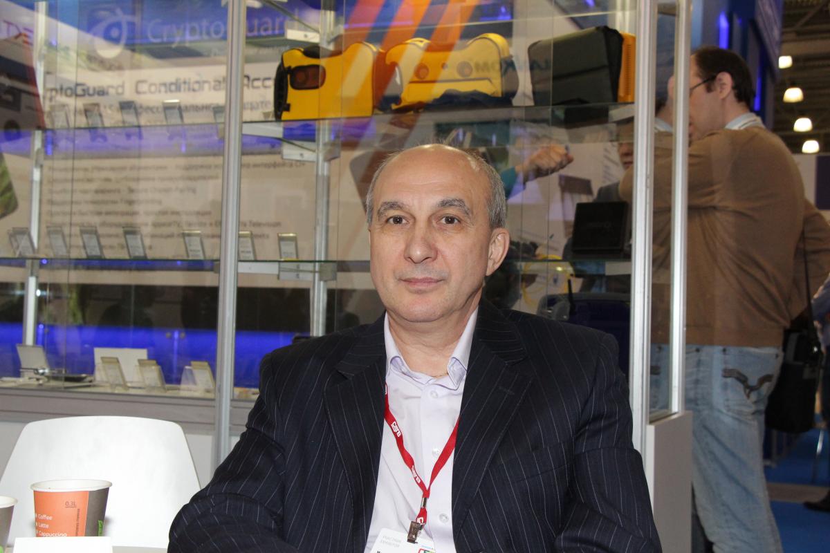 О выставке: "Она столь же многолюдная, что и прошлая. Представлены практически все вендоры, все интеграторы. Интерес к отрасли по-прежнему очень высок. По уровню развития платного ТВ мы очень отстаем от Европы и США и еще не использовали все резервы роста. Я думаю — прорвемся".