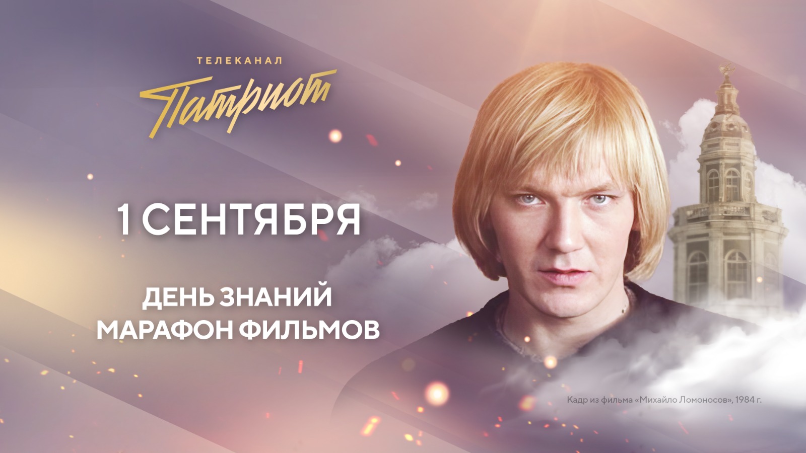 На телеканале "Патриот" 1 сентября фильмы о стремлении к знаниям и о героических подростках. Начнет марафон многосерийный фильм "Михайло Ломоносов" о создателе первого российского Университета, ученом, просветителе Михаиле Ломоносове. Через призму жизни великого человека в картине показана также история России XVIII века. Далее в программе трехсерийный фильм по повести Аркадия Гайдара "Школа", действие которого происходит во время Гражданской войны. Завершат марафон фильмы о детях войны: "Мама, я жив" и "Два Федора".