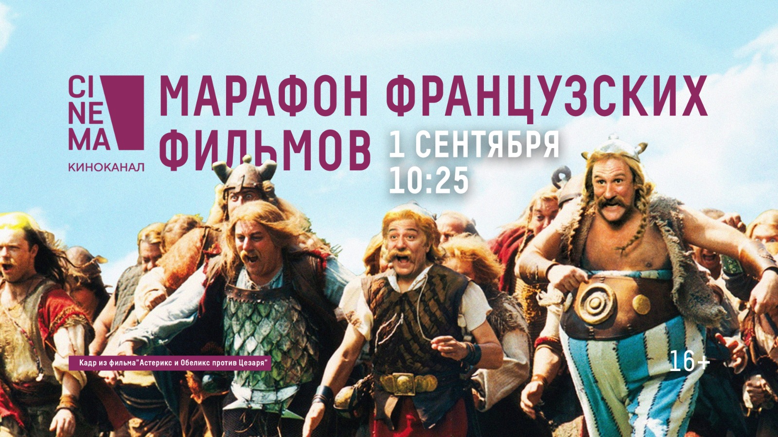 Киноканал Cinema 1 сентября пригласит зрителей на "уроки французского". Весь день канал будет показывать популярные фильмы кинематографистов из Франции. Начнётся киномарафон историей об отважных галлах "Астерикс и Обеликс против Цезаря". Далее зрители увидят новые приключения героев в Египте, Греции, Британии и Китае в фильмах "Астерикс и Обеликс: Миссия Клеопатра", "Астерикс на Олимпийских играх", "Астерикс и Обеликс в Британии 3D", "Астерикс и Обеликс: Поднебесная". Далее киноканал покажет картину "Ямакаси" о том, как мастера паркура готовы пойти на многое, чтобы помочь больному мальчику. И завершат марафон четыре части франшизы "Такси" о бесшабашном парижском таксисте.