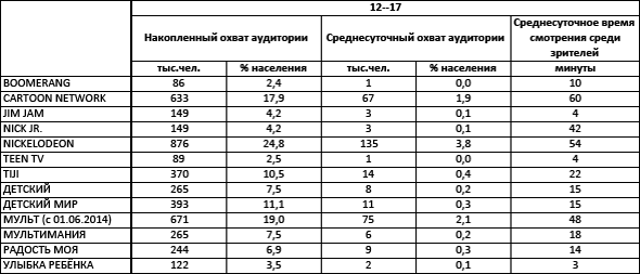 А вот в компании "Цифровое телевидение" в успех совмещения детских аудиторий не верят, поэтому "Мульт" они ориентируют на деток в возрасте от 2 до 6 лет, а запускаемый в августе этого года канал Ani - на девочек от 5 до 11 лет. По мнению Сергея Кошлякова, склонение в слишком универсальную аудиторию - не лучшее решение, хотя, каналу Nickelodeon, у которого аудитория как раз является смешанной, это не мешает оставаться лидером среди детского телесмотрения. О чем свидетельствуют и данные TNS за первый квартал 2015 года.
