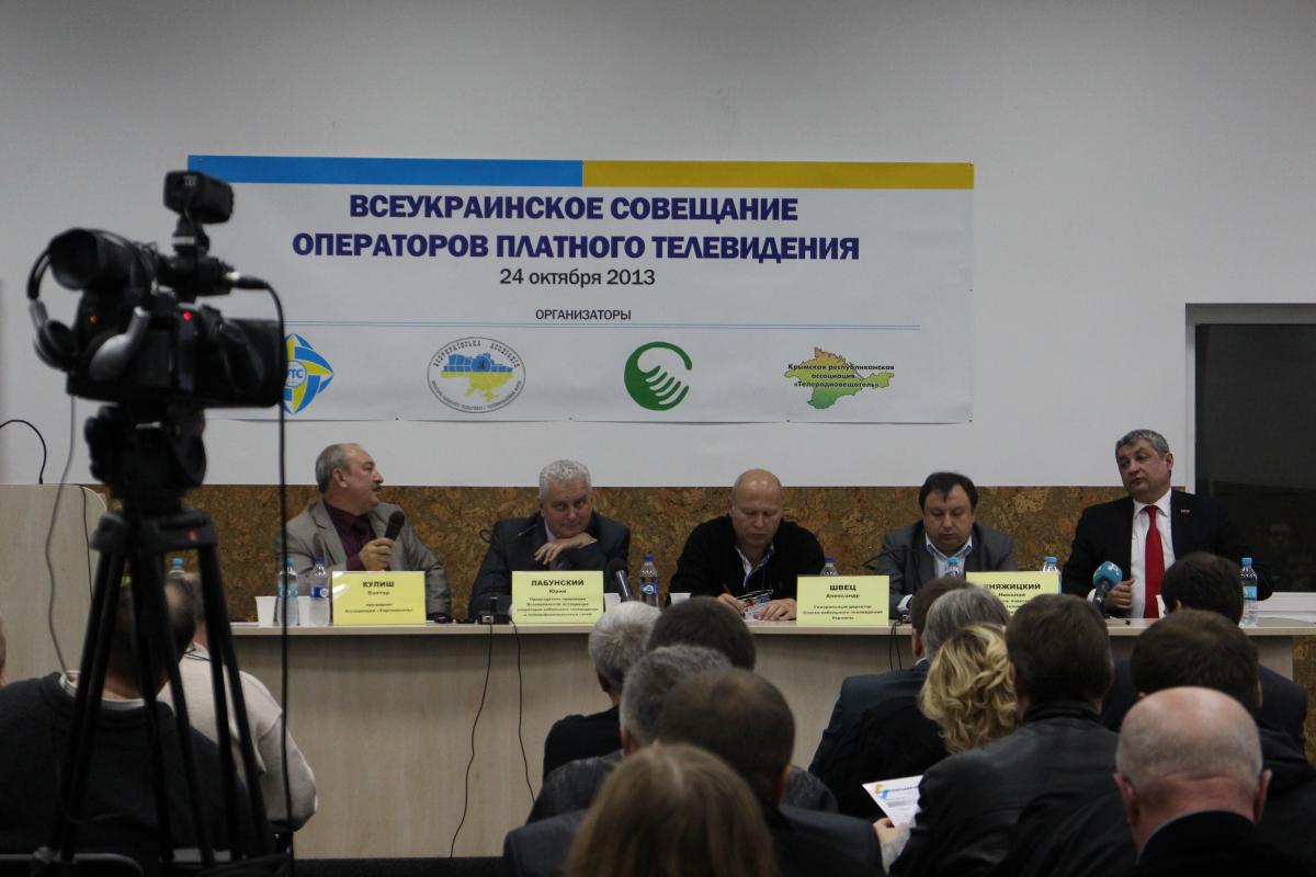 На следующий день в рамках Всеукраинского совещания операторов платного телевидения, по сути, были подняты те же проблемы. При этом Виктором Кулишом, президентом Ассоциации "Укртелесеть", дополнительно были озвучены еще некоторые проблемы местного рынка. Это сложный и долгий механизм получения и переоформления лицензий, а также их высокая стоимость; растущая конкуренция, вызванная появлением новых спутниковых платформ, цифровым эфирным ТВ, получающим господдержку, OTT и IPTV; обязанность ретранслировать большой пакет must-carry (32-36 телеканалов, хотя ранее было 12-18). Последняя проблема может привести к снижению конкурентоспособности небольших кабельных операторов, вынужденных заменять популярные телеканалы на зачастую не интересующие зрителей обязательные. Практика показывает, что от 50 до 70% ресурса сетей аналогового ТВ (которых на Украине большинство) отводится под must-carry. Таким образом, решением государственного регулятора (Национального совета по вопросам телевидения и радиовещания) "собственников телекоммуникационных сетей ограничили в праве владеть, распоряжаться и использовать ресурс сетей, принадлежащий им на праве частной собственности".