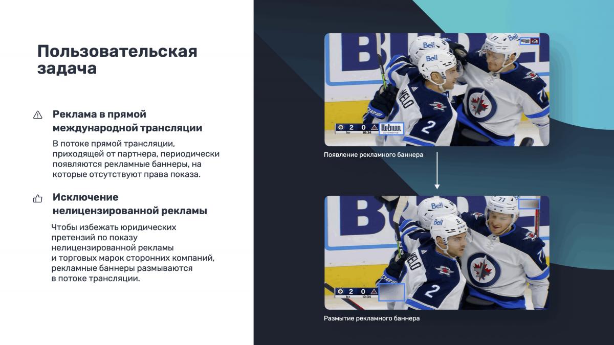 Вообще, все, что касается замены в потоке рекламы сейчас является актуальным. Но в спорте с такими вещами есть особые нюансы. Так, порой некоторые трансляции (особенно когда речь касается иностранных турниров) отдают вещателям выезжающими рекламными баннерами, права на которые не распространяются на территорию РФ. "Стрим Лабс" решил это программой, в которой прописан алгоритм распознавания таких баннеров и их заблюривание в автоматическом режиме. Также софт позволяет быстро добавлять новые баннеры или использовать добавленные ранее.