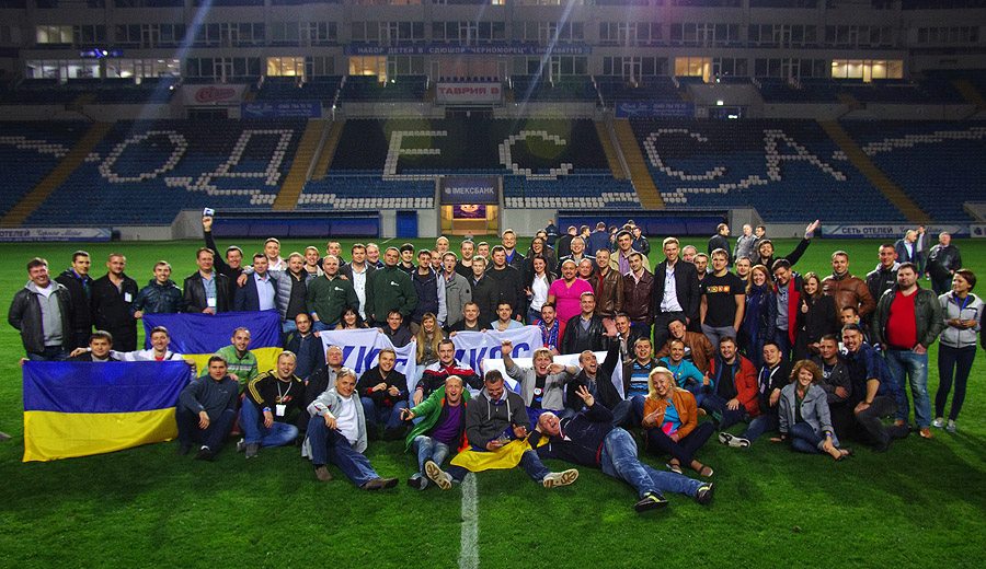 Еще классно было в... Блин, это как раз 2014 год был – мы всей толпой взяли кучу автобусов и были недалеко от Одессы, ехать минут 20 от Одессы было, и футбольный матч был. И мы толпой просто – все, кто был, почти все поехали на футбол.