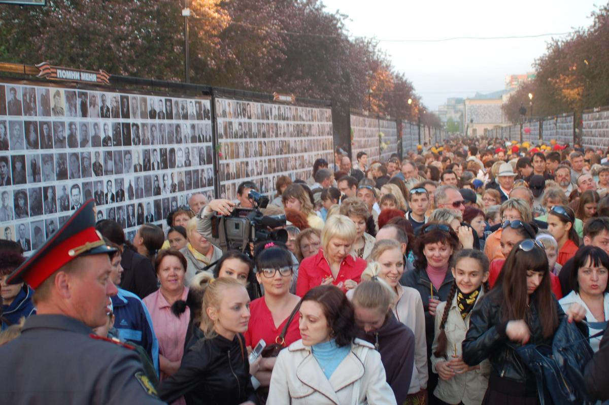 В конце апреля начался монтаж Стены Памяти длинной 1418 метров (именно столько дней длилась Великая Отечественная война), на которой размещались фотографии с подписями. Когда 9 мая в Челябинске в 21:30 на Алее Славы церковный хор пропел поминальную молитву одновременно зажглись сотни тысяч свечей, остановились машины, зазвучал метроном. Минута молчания транслировалась в прямом эфире.