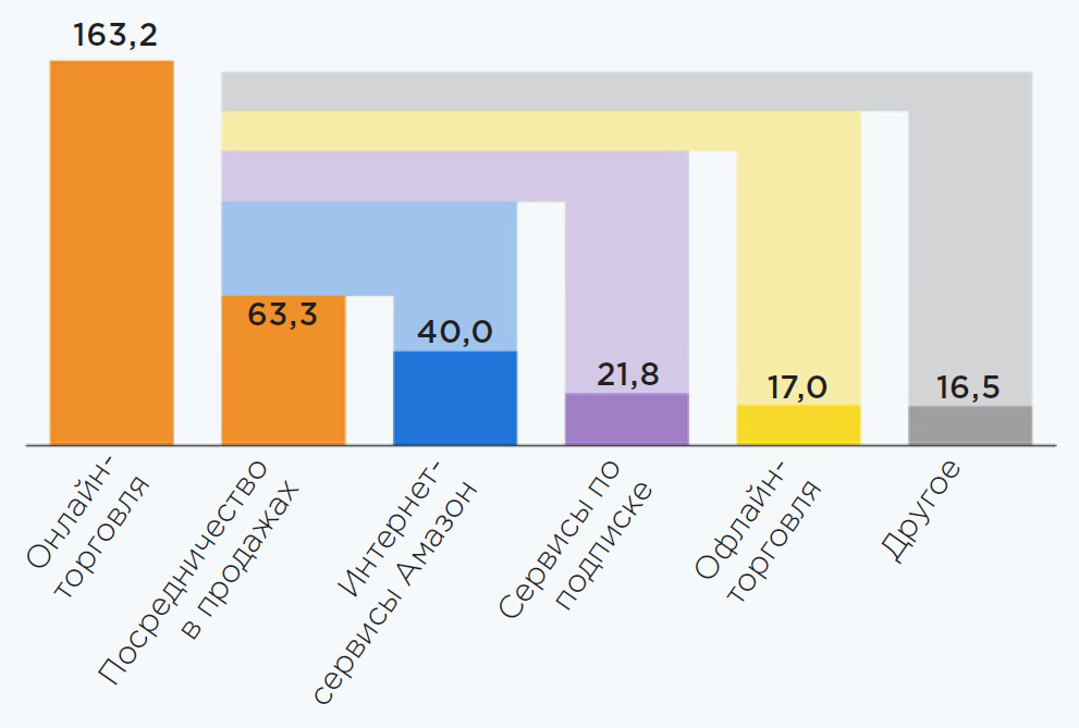 Рис. 1. Структура выручки Amazon (млрд. долларов США), 2020