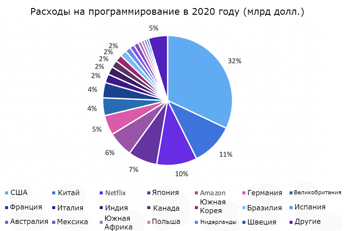 По итогам 2019 года Netflix, запустивший свой стриминговый сервис в 2007 году, уступил по объему инвестиций в программирование только США и Китаю. Amazon при этом занял пятое место, сразу после Японии.