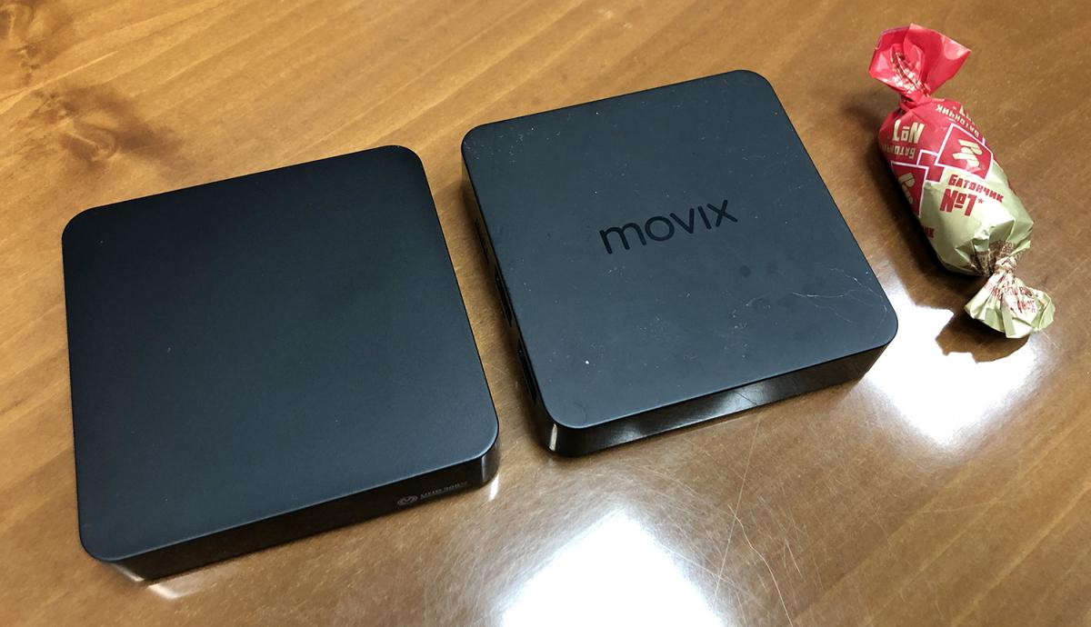 Приставка имеет те же размеры, что и MovixPro– 85x85x16 мм, а вес всего около 100 г.