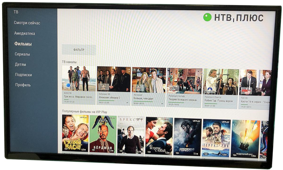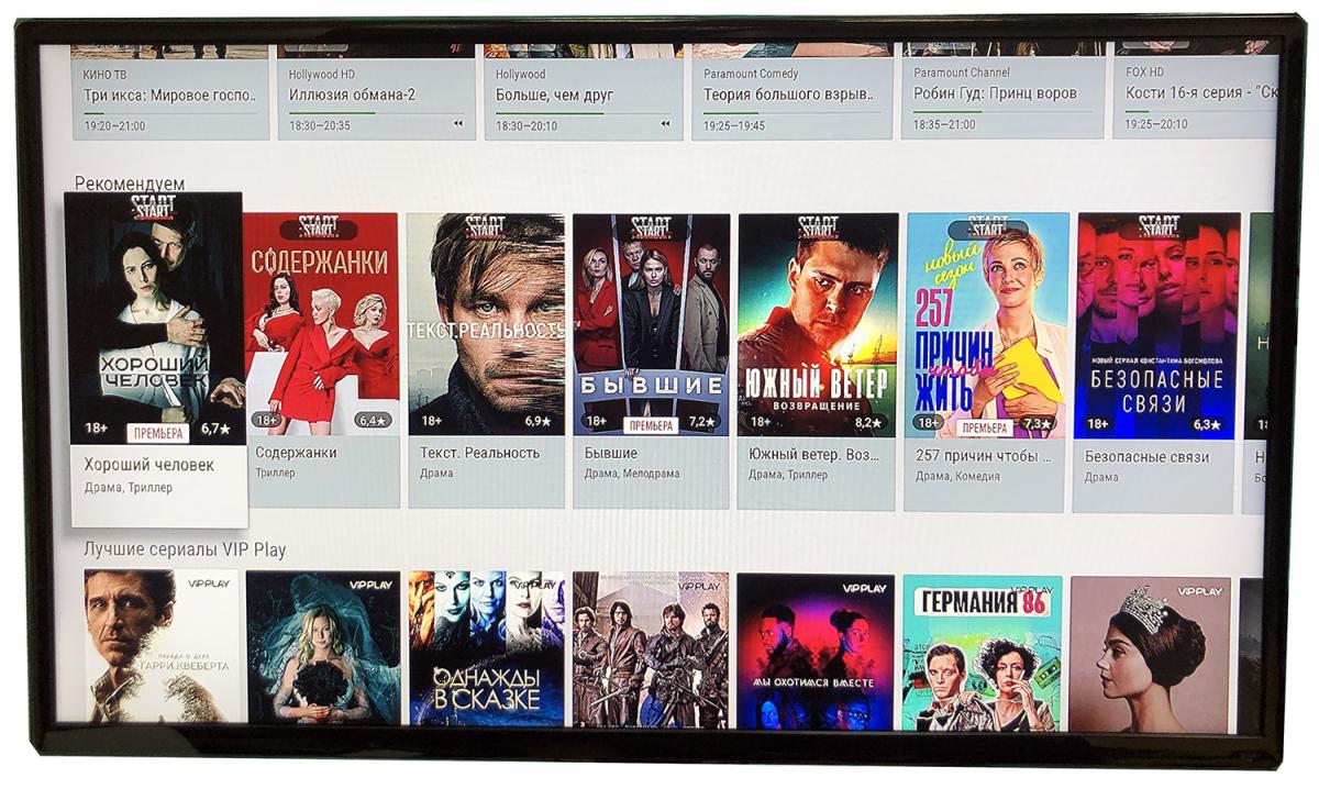 Понравилось, что в разделе "Фильмы" и "Сериалы" и "Детям" страница всегда начинается с live TV-программ, которые идут сейчас на каналах.