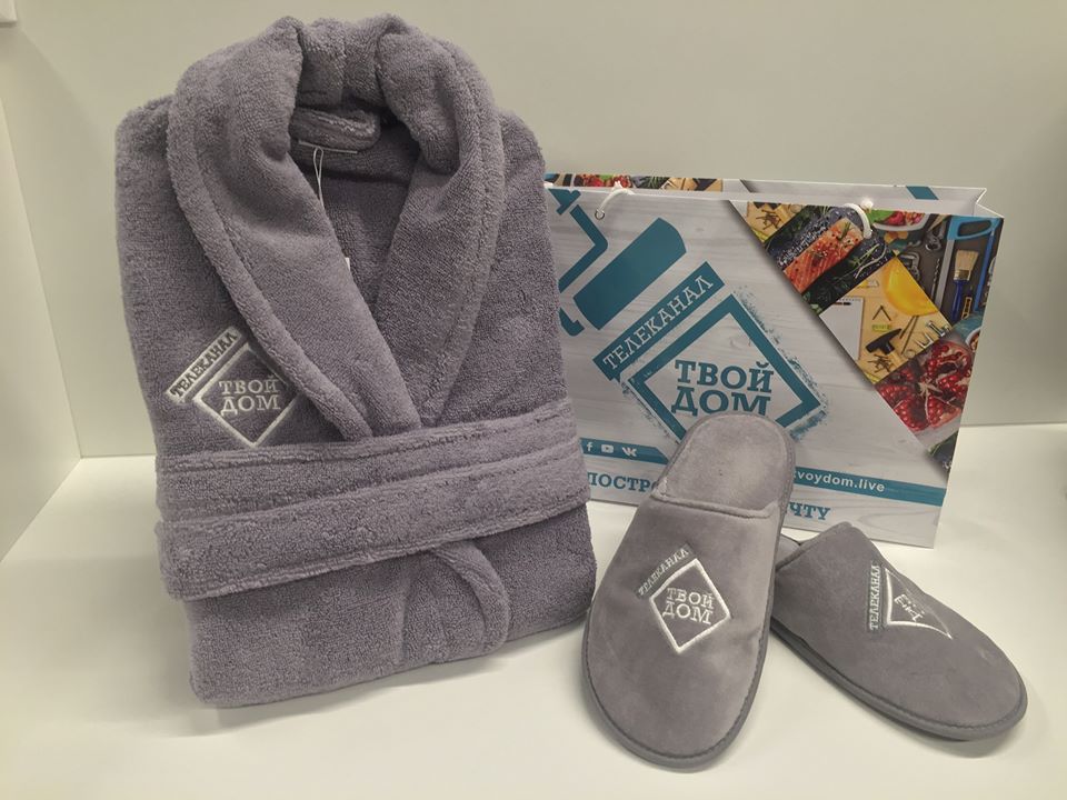"Основным посылом было – отразить тематику канала. От полезного телеканала, полезные подарки. Халат и тапочки – это олицетворение уюта и домашней атмосферы. Практичную сторону домашнего обихода на себя взяли разделочные доски".
