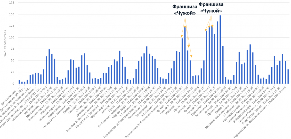 Что касается телеканала TV1000 Action, канал получил прекрасные цифры по смотрению фильмов франшизы. Благодаря интересу к "Чужим" и небольшой (читай – не затратной) рекламной кампании, которая включила в себя промо на канале, кросс-промо на каналах TV1000 и TV1000 Русское кино, продвижение в собственных группах в социальных сетях, на Яндекс Дзене, ресурсах операторов и спец. проект-голосование от Кино-Театр.Ру, 22 и 23 февраля среднемесячные аудиторные показатели канала были превышены на 49% и 130% соответственно, а количество зрителей в эти дни стало рекордным за месяц.