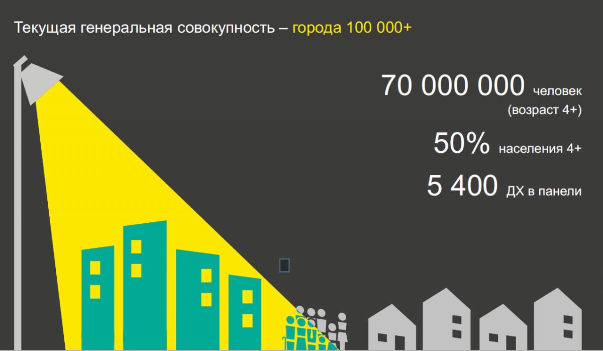 Я. Бельская: Но ведь финансово стоимость разворачивания такой панели и сбора таких данных будет примерно сопоставима с затратами на панель 100+ [исследовательскую панель для городов с населением более 100 тысяч человек]?
