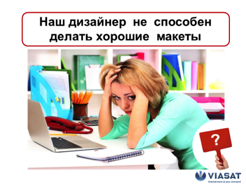 Давайте договоримся, что не будем принимать во внимание отговорки про некомпетентность и малообразованность дизайнеров! Истории о том, что ваш дизайнер работает всего на полставки, получает маленькую зарплату и сильно загружен технической работой тоже не имеют ничего общего с качеством рекламного макета.