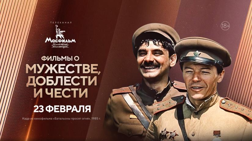 23 февраля телеканал "Мосфильм. Золотая коллекция" покажет фильмы о подвигах и мужестве, доблести и чести. Начнется кинопоказ с четырехсерийного фильма "Батальоны просят огня" по одноименной повести Юрия Бондарева. Далее масштабная киноэпопея "Освобождение" Юрия Озерова, в которой отразились крупные сражения Великой Отечественной войны. Вечером киноканал покажет военную драму Сергея Бондарчука по одноименному произведению Михаила Шолохова "Они сражались за Родину". Сразу после первый полнометражный фильм Федора Бондарчука "9 рота" о мужестве молодых призывников, попавших на войну в Афганистане.