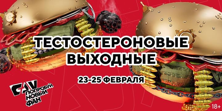 23 февраля на канале фильмы "Любой ценой", "Кровный отец", "Левша", "Оружейный барон", "Заступник"; 24 февраля – "Охотник на лис", "Реальный Рокки", "Пассажир", "Джон Уик 2", "Дело храбрых"; 25 февраля "Последний рубеж", "Пазманский дьявол", "Стрингер", "Джон Уик 3", "Глубоководный горизонт".