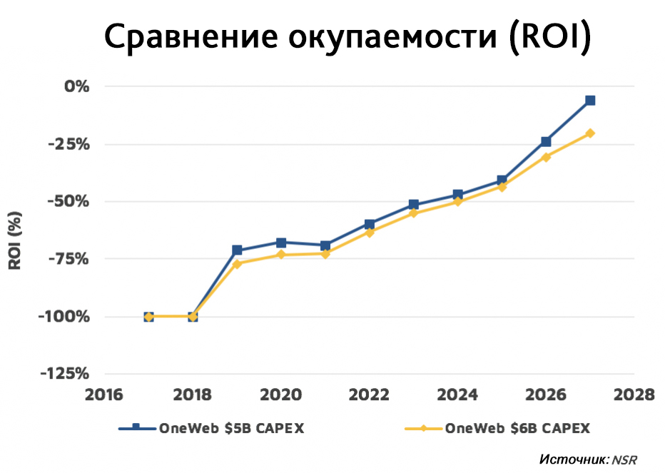Примерная стоимость необходимых инвестиций: в 2014 году проект оценивался в 600 миллионов долларов, потом оценка увеличилась до 1-3 миллиардов. До 2017 года считалось достаточным 3,5 миллиардов долларов, однако сейчас, после того, как стоимость каждого ИСЗ с 0,5 миллиона долларов увеличилась практически в два раза, эксперты называют необходимую сумму инвестиций в 5-6 миллиардов долларов.