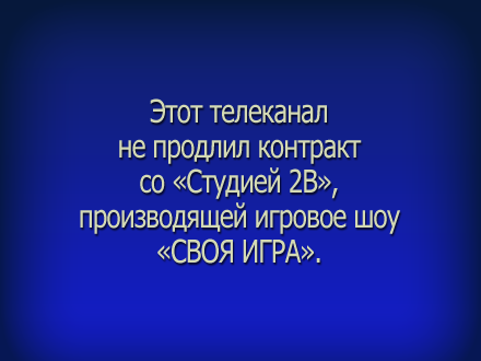 «Только что мы получили распоряжение об отмене декабрьских съемок „Своей игры“. Телеканал НТВ не продлил договор с передачей на 2013 год. Видимо, с телесериалами вроде „Братаны-3“ и „Дикий-2“ наша передача не гармонирует, а уровень интеллекта и эрудиции выше, чем у программы „Ты не поверишь!“, для НТВ неприемлем.
