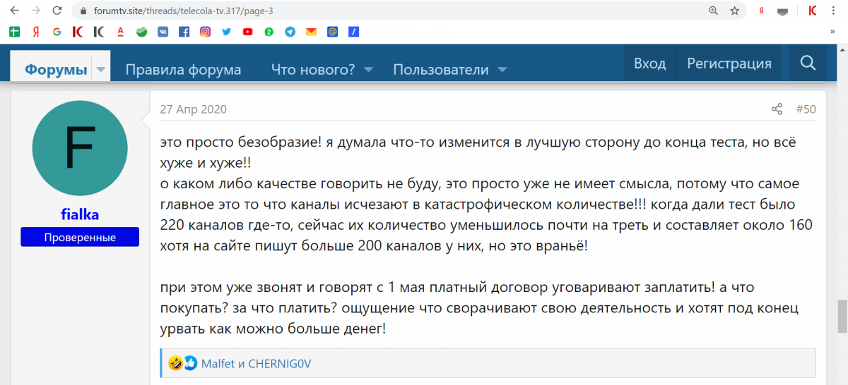 Согласно опросу, который мы провели при подготовке этой статьи, лицензионных контрактов у платформы Telecola с этими телеканалами не было. Правообладатели просто обнаруживали свои каналы в пакете Telecola.TV, обращались в компанию, но та отказывалась заключать с ними возмездные соглашения.