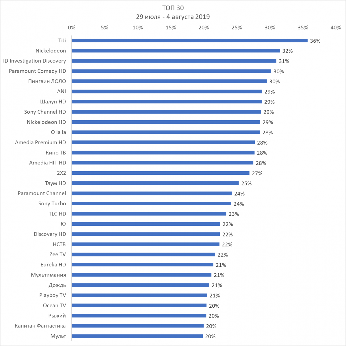 Обращает внимание то, что детские телеканалы заняли 10 мест из первых 30. Это хорошая иллюстрация вовлеченности детей в использование современных технологий.