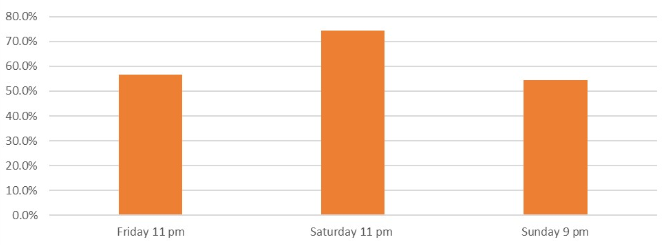 В некоторых странах Западной Европы введен карантин. В нашем анализе "День 1" – это день, когда решение о введении карантина вступило в силу. Кроме того, мы рассмотрели ситуацию в первый уикенд после введения карантина. В нашем анализе это "Уикенд 1" (или "Воскресенье 1" в "Уикенде 1"). Мы сравнивали трафик день в день (рабочий день с рабочим днем и выходной день с выходным). День на неделе после введения карантина сравнивался с аналогичным днем предыдущей недели.