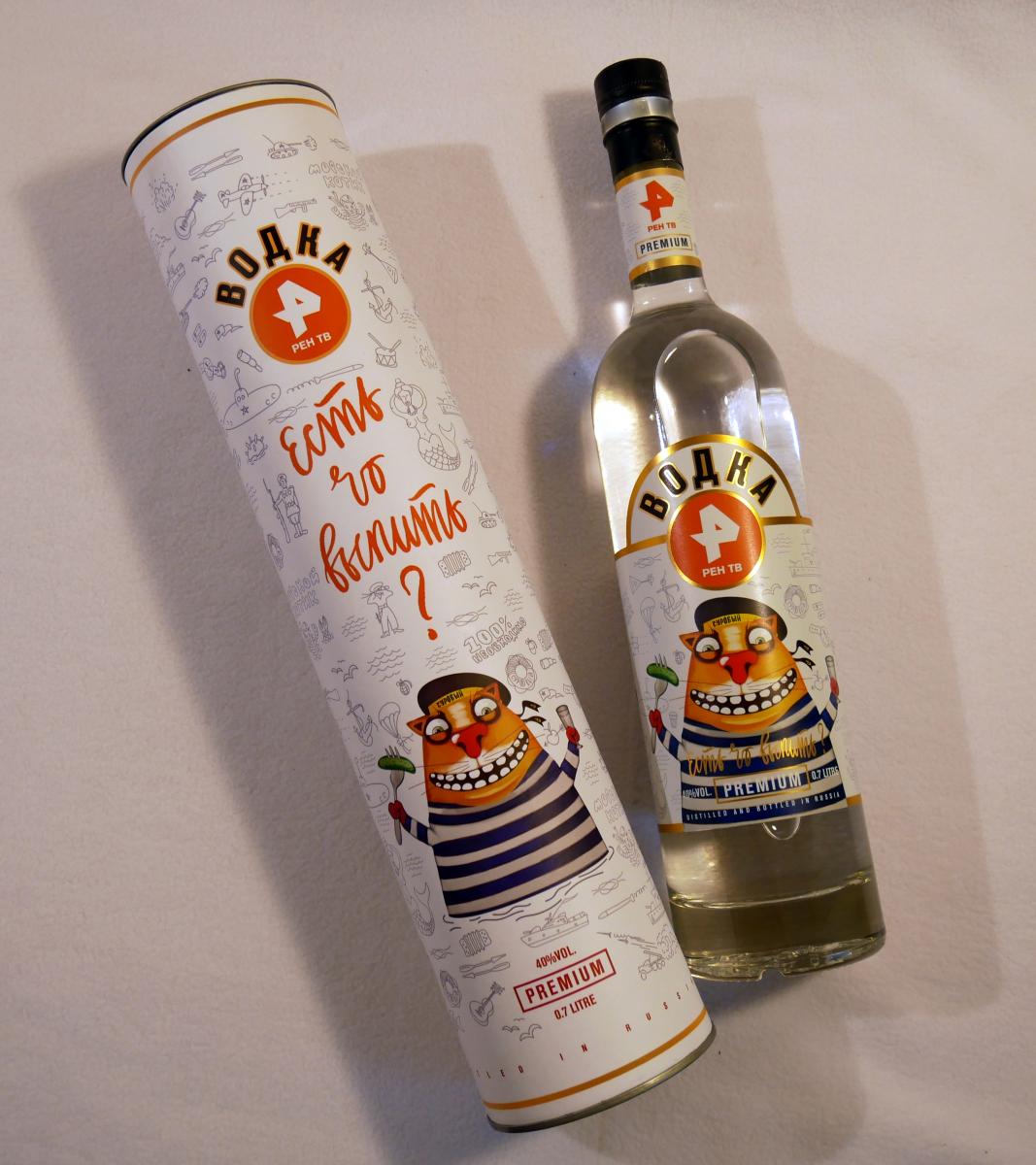 Телеканал "Рен ТВ" для "сугреву" задарил классическую водку в оформлении Васи Ложкина. Если не для употребления внутрь, то в коллекцию подойдет точно. Оформление тубуса и бутылки восхитительно, как и все, что делает Вася Ложкин (редакция "Кабельщика" входит в число его горячих поклонников), правда, для публикации нам пришлось закрасить лейбл производителя. Ну, вы понимаете :)