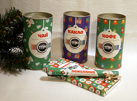 Компания "Первый ТВЧ" блюдет традиции - уже не в первый год дарит бодрящее полезное, кофеино- и шоколадосодержащее. (До момента публикации, заметим, дожили только симпатичные баночки, удобные для хранения чая).