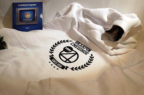 ТНТ 4 подошли креативно к подарку и в упаковке в виде телевизора подарили заставку ТНТ4, которая на проверку оказалась уютной толстовкой.