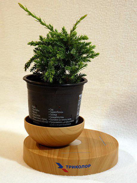 "Триколор ТВ" порадовал подставкой для растений в эко-стиле, да не простой? а на магнитной подушке (правда, левитировать в момент фотосессии елочка наотрез отказалась, но при выключенной камере полетела, как миленькая!)