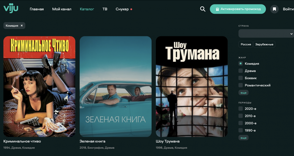 А также подборки "улетных" и просто хороших комедий на Viju, Okko и Premier