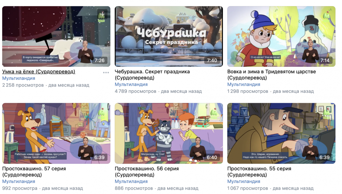 Одной из важных digital-кампаний телеканала "Мультиландия" стал адаптивно-инклюзивный проект "Страна доступных мультфильмов", реализованный совместно с киностудией "Союзмультфильм". Главная цель проекта — сделать мультфильмы доступными каждому и адаптировать их для глухих и слабослышащих детей. На жестовый язык в 2022 году были переведены новогодние мультфильмы "Умка на елке", "Чебурашка. Секрет праздника", "Вовка и зима в Тридевятом царстве", а также 58 серий анимационного ситкома "Простоквашино". Этот проект собрал 58 000 просмотров анонсирующих постов и 37 292 просмотра мультфильмов на платформе VK видео.