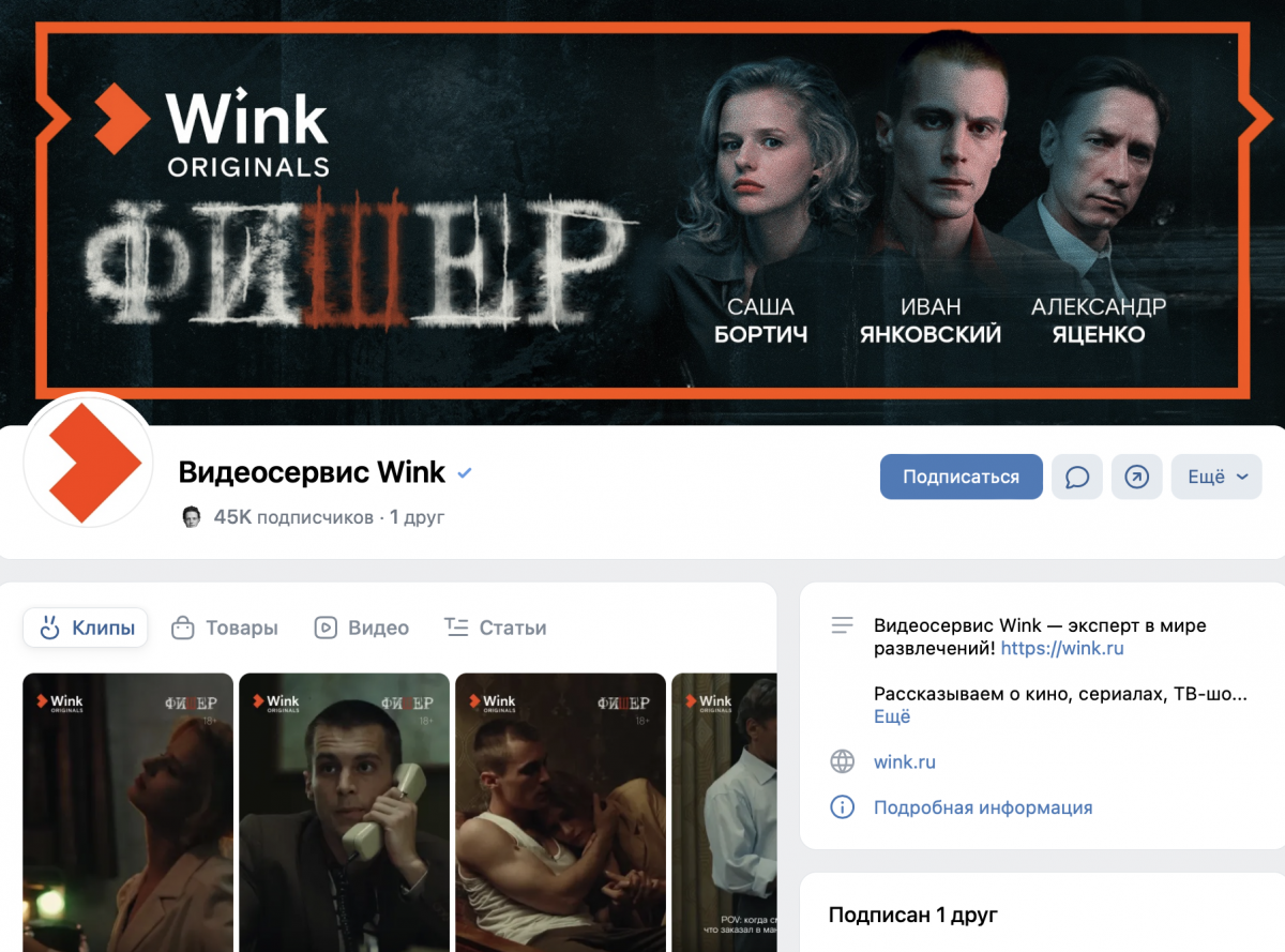 "Чтобы рассказать о новинках кино и сериалов, а также, конечно, о нестареющей классике мирового кинематографа, видеосервис Wink держит с пользователем связь через соцсети. Видео, челленджи, мемы, подборки – каждый найдет для себя контент по душе. Мы ведём странички в VK, Telegram, Дзен, Rutube и YouTube. Но тем не менее, мы держим руку на пульсе и смотрим на другие social media, исходя из наших задач.