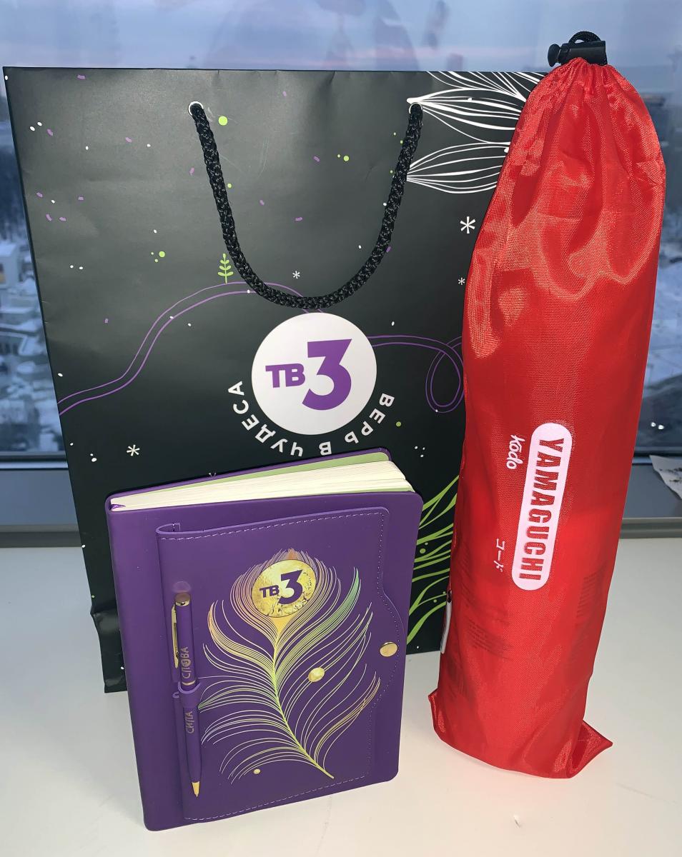 Еще коллеги получили в подарок беспроводные колонки, которыми телеканал подчеркнул, что несмотря на расстояние мы с ними всегда на одной волне. Так же подготовили подарочные наборы сковородок – такой "привет" с телевизионной кухни, где готовят крутой контент.