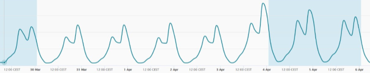 В некоторых европейских сетях пиковый уровень исходящего трафика на одного абонента составляет в среднем 1,7 Мбит/с. В начале марта он составлял 1,1 Мбит/с. Теперь он держится на новом высоком уровне в течение длительного времени на протяжении всего дня.
