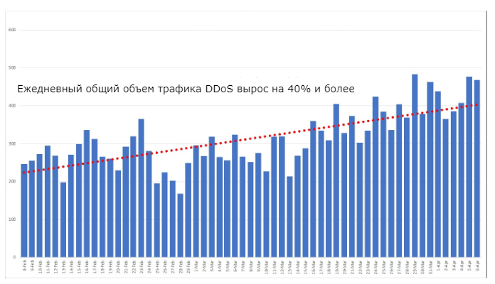 Мы видим непрерывный рост общего объема трафика DDoS. Его объемы превысили докризисный уровень на 40%. Этот рост может быть связан с атаками на игровые приложения. Мы будем расследовать эту ситуацию и расскажем о результатах в последующих публикациях.