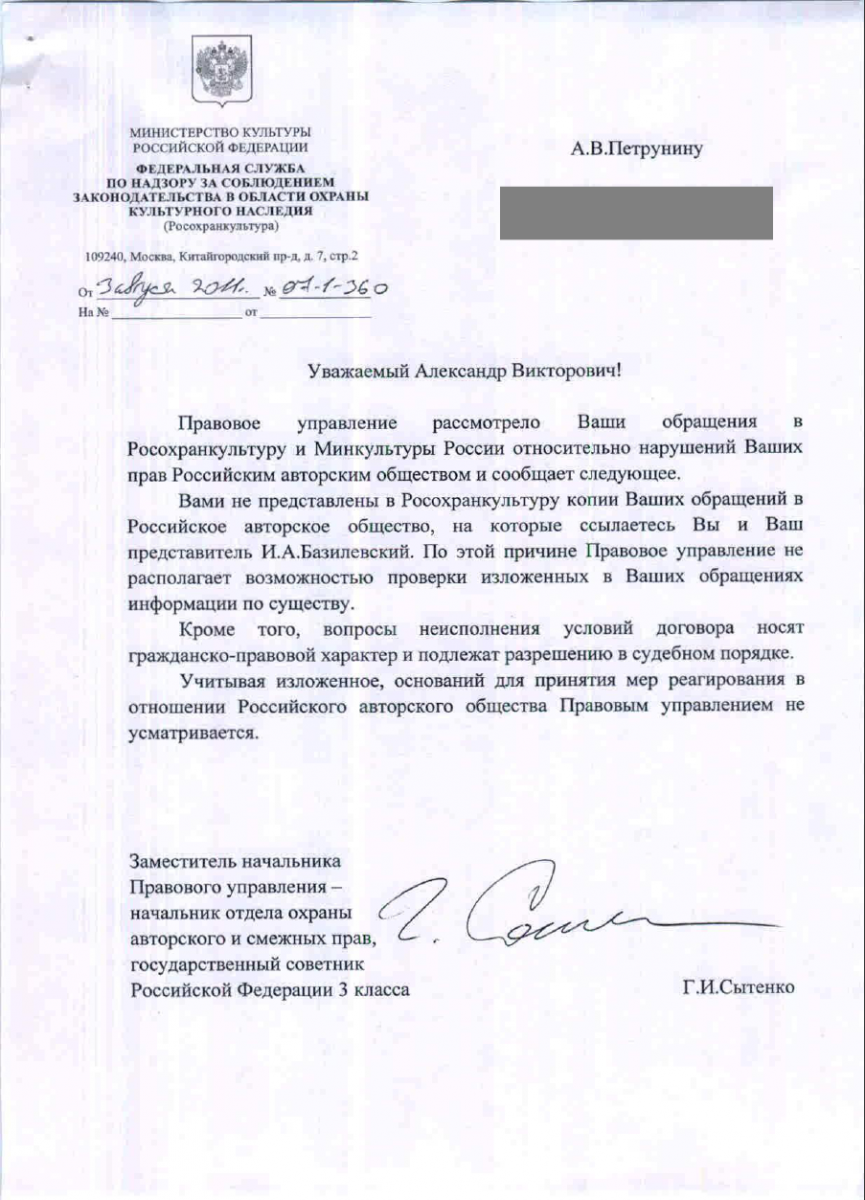 Но история с попытками добиться правды через судебное решение еще не закончена. О попытке взыскать авторское вознаграждение с РАО, на этот раз — в пользу композитора Александра Петрунина «Кабельщику» рассказывает бывший заместитель генерального директора РАО, а ныне — юридический консультант музыканта Игорь Базилевский: