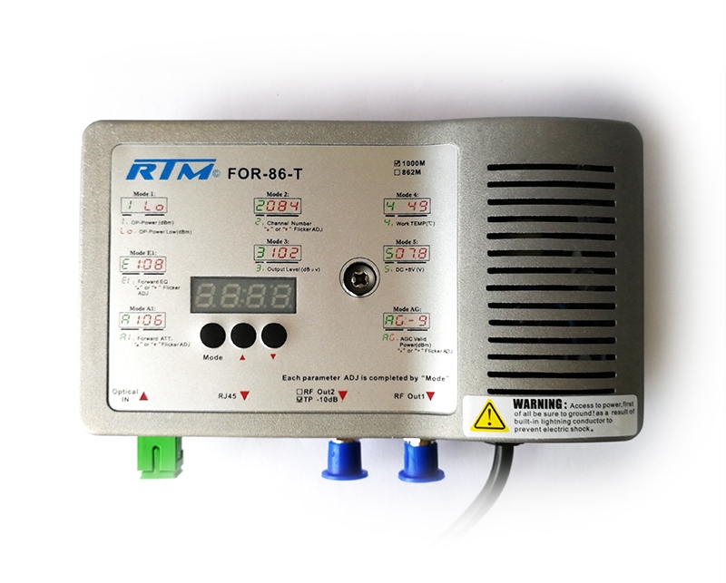 Модели FOR-86-Т и FOR-86-Т2 наиболее оптимальны для подключения пятиэтажек. Диапазон частот от 45 до 1003 МГц, максимальный выходной уровень CTB/CSO 59ch CENELEC 112 дБмкВ. Длина волны оптического сигнала 1100–1600 нм. Версия Т2 обладает функцией мониторинга устройств.