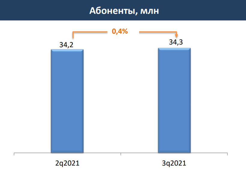 Лидерские позиции по показателям прироста абонентской базы в 3 квартале 2021 года сохранила компания МТС, число ее пользователей выросло на 83 тыс. (на 2,1%). Органический рост абонентской базы компании обеспечивают конвергентные тарифы, а также расширение присутствия за счет консолидации "Зеленой точки" (учитывается в составе МТС со второго квартала 2021 года).