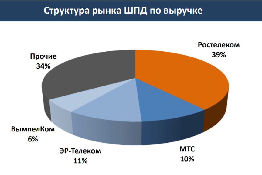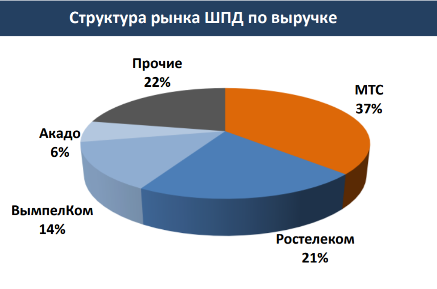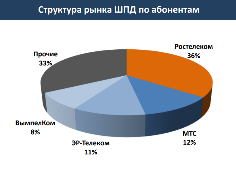 На московском рынке, где проникновение уже достигло 90%, заметного роста не наблюдается. Абонентская база близка к 4,4 млн, денежный объем рынка — 4,2 млрд руб. Крупнейшими операторами являются МТС (МГТС), "Ростелеком", "ВымпелКом", "Акадо".
