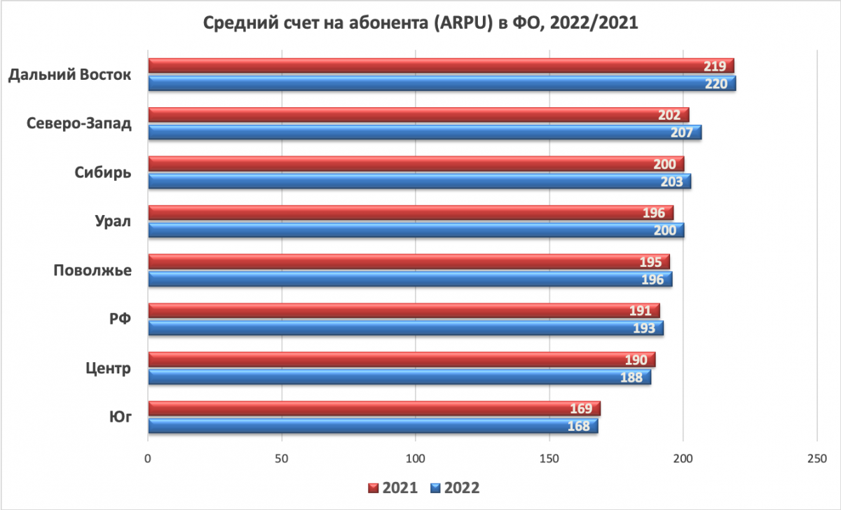 Несмотря на то, что в 2022 году в целом по рынку средний счет вырос всего на 1 рубль, в отдельных сегментах динамика ARPU оказалась более заметной.