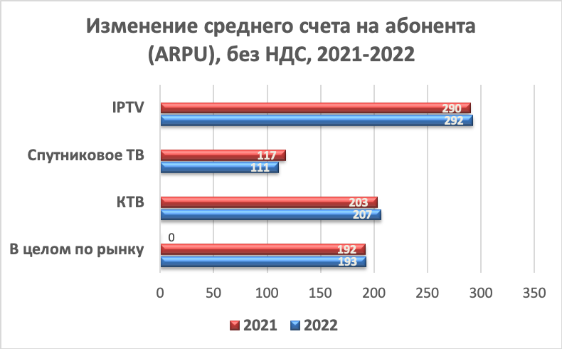 После снижения в течение 2020 и 2021 годов ARPU в IPTV в 2022 году вырос на 2 рубля. Причиной стали повышение моно- и пакетных тарифов многими ШПД-провайдерами, а также рост потребления нелинейных ТВ-услуг.