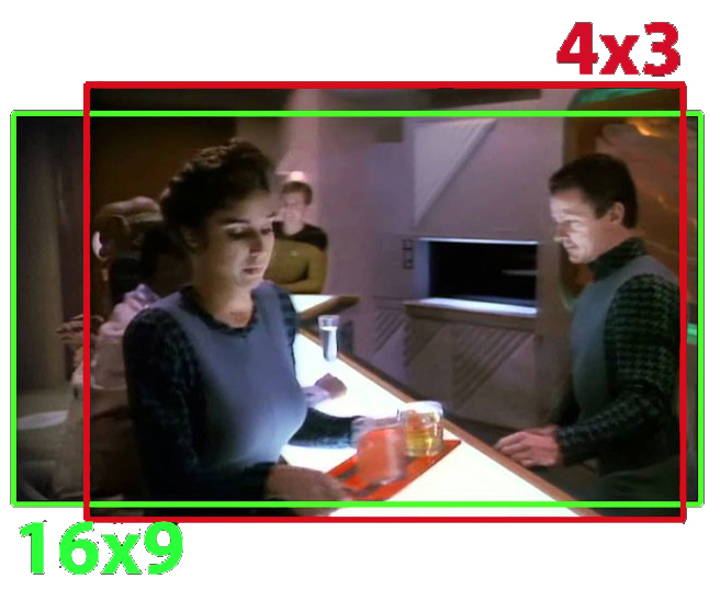 Тем не менее, аспект кадра 16:9 при переходе на "цифру" – это фактически, новый стандарт, и сейчас мы наблюдаем обратную ситуацию, когда вещатели в "цифре" вынуждены вписывать свой старый контент, снятый в 4:3, в размер кадра 16:9.